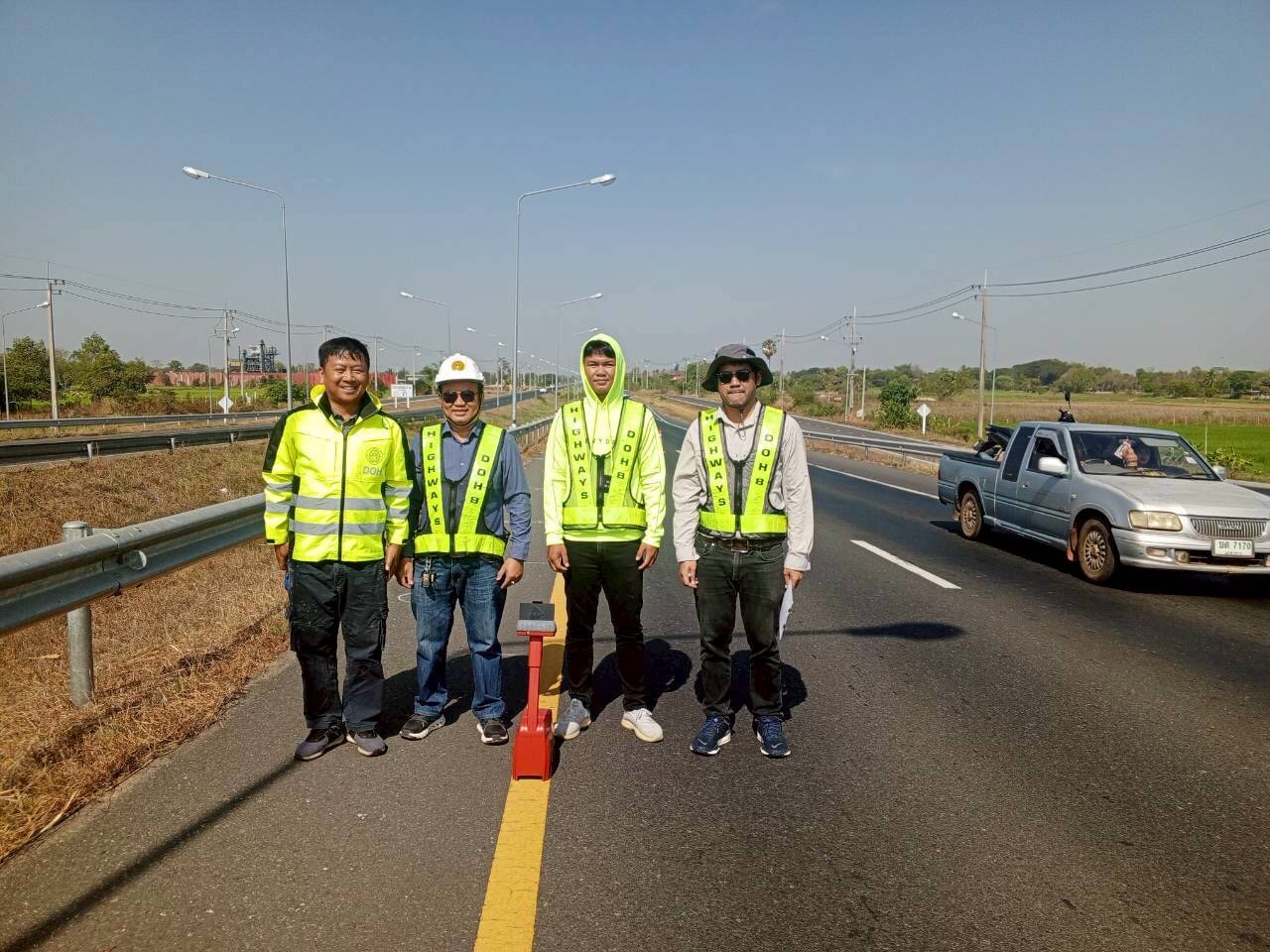 นำเครื่องมือสำรวจวัดการสะท้อนแสงเครื่องหมายจราจรบนผิวทางแบบต่อเนื่อง (Dynamic Retroreflectometer) ทำการสอบเทียบ (Calibration) กับเครื่องมือวัดค่าการสะท้อนแสงเครื่องหมายจราจรบนผิวทางของสำนักงานทางหลวงที่ 8 |